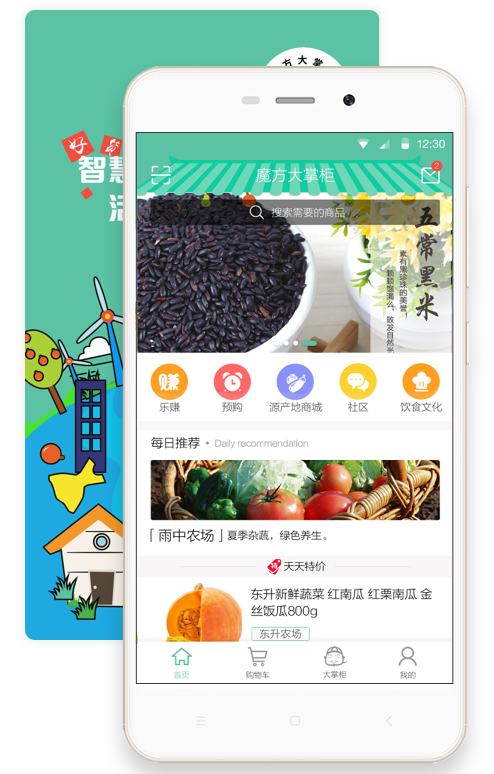 集合城市周邊大中小型農(nóng)場(chǎng)和特色產(chǎn)品供應(yīng)商,通過(guò)魔方大掌柜APP商城購(gòu)物、社區(qū)互動(dòng)、每日簽到、娛樂(lè)賺錢、預(yù)購(gòu)等,活躍城市小區(qū)人員,線上一鍵下單,線下當(dāng)日把新鮮健康特色產(chǎn)品及時(shí)送到家。同時(shí)覆蓋社區(qū)生活服務(wù)行業(yè),周邊購(gòu)物生活服務(wù)行業(yè),一款集合人類生活日常所需的服務(wù)型APP。